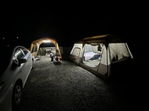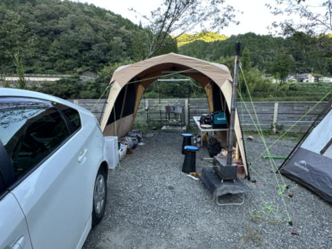 相変わらず同じテント・同じターフ、同じプリウスです。