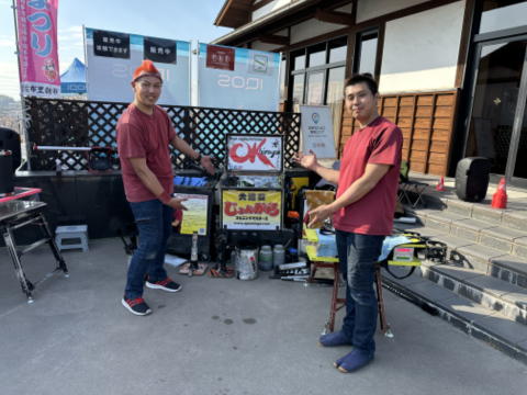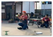 今年の佐布里梅まつりに、スピニングマスターズの大道芸が出現しています。